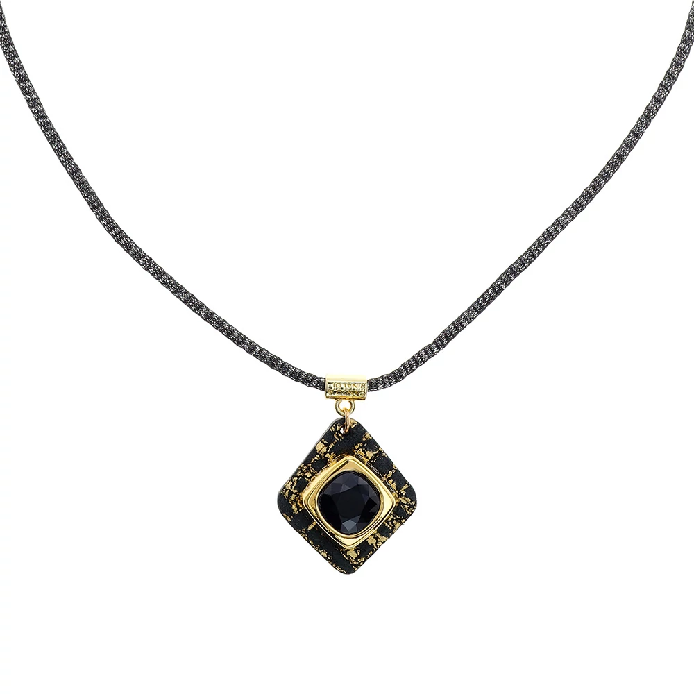Cango & Rinaldi Magic fekete színű fém nyaklánc, arany nyomott mintás fekete bőr medál. Minőségi olasz bőrrel, arany színű fémkellékkel készül. Cango & Rinaldi felirattal van ellátva. Benne fekete színű kristállyal. A bőr mintázata részleteiben eltérhet a képen láthatótól.