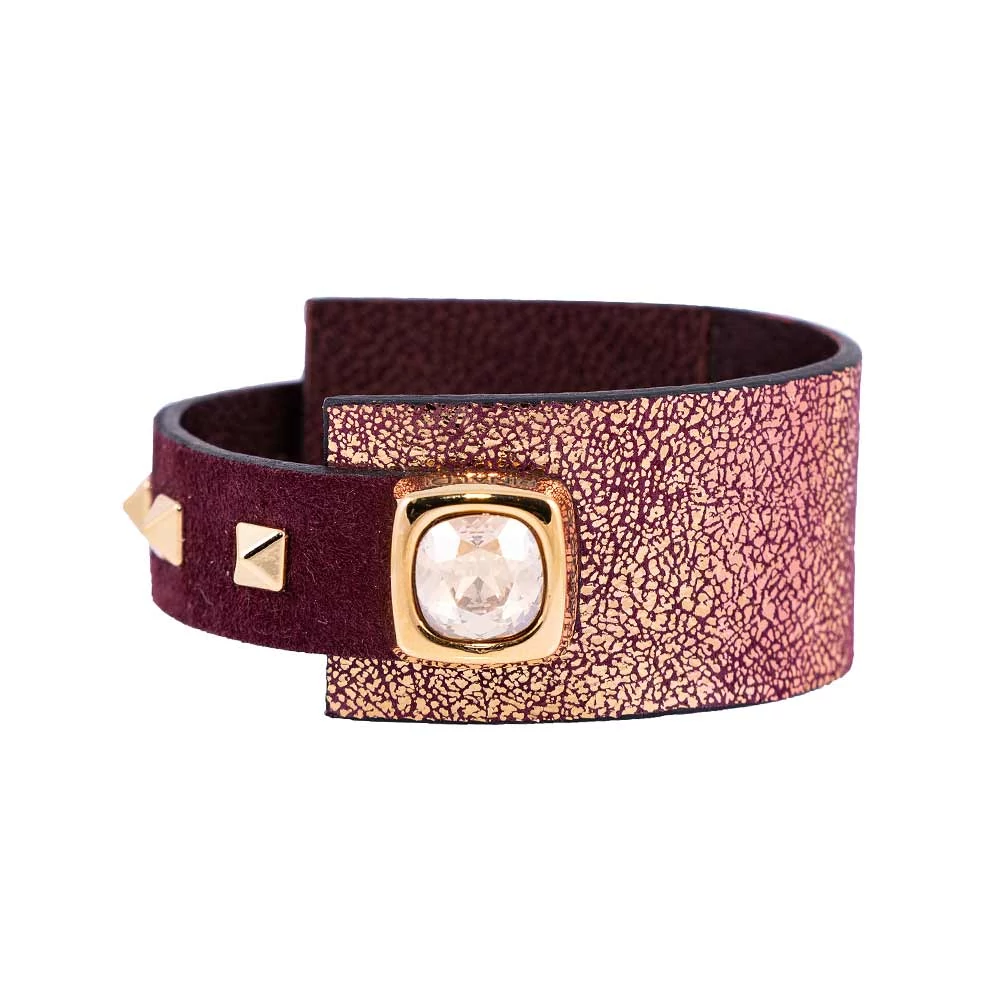Cango & Rinaldi Magic színjátszó AB és bordó bőr karkötő arany színű fém díszítéssel és arany színű kristállyal