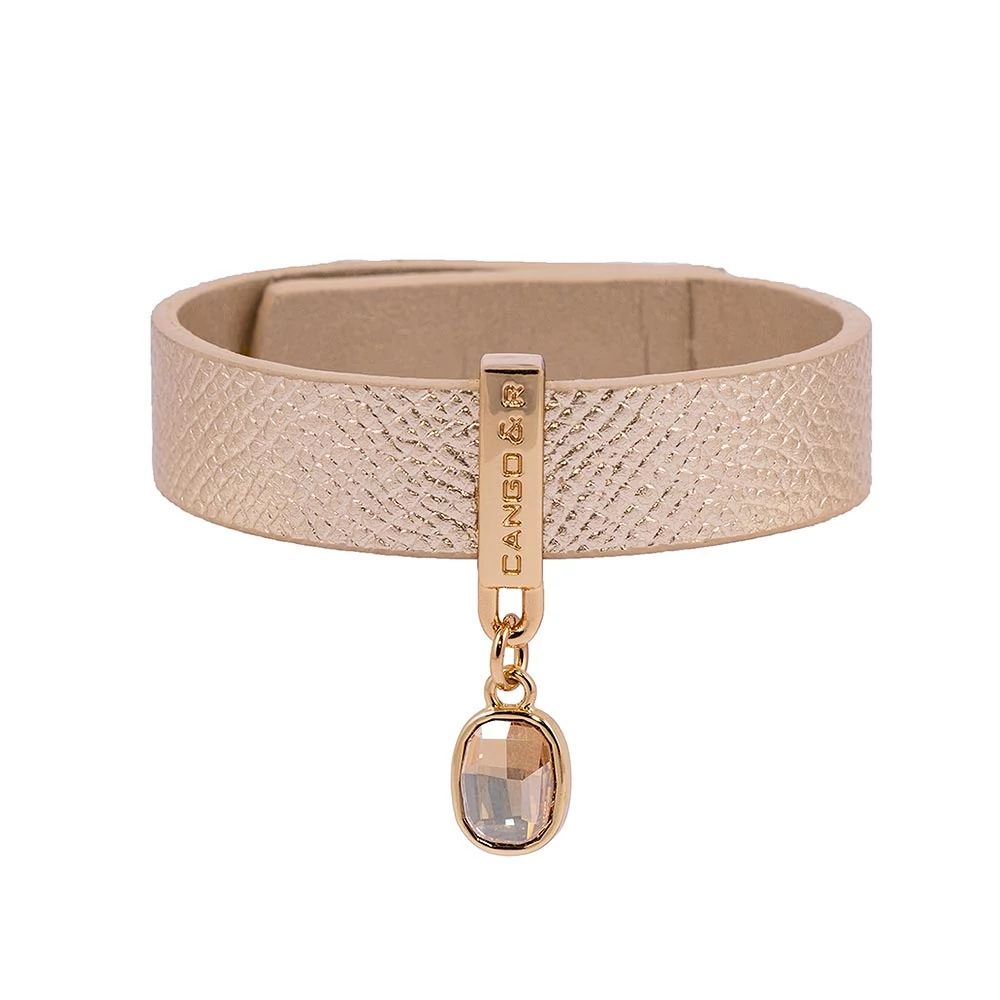 Cango & Rinaldi Magic arany színű mintás bőr karkötő arany színű fém díszítéssel és lógós arany színű kristállyal