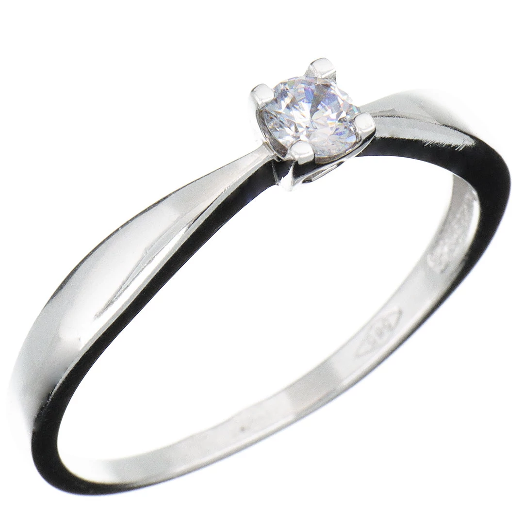 Eljegyzési gyűrű (más néven leánykérő, vagy szoliter gyűrű) egyetlen kerek, fehér cirkónia kővel, négykarmos, szív kivágásos foglalatban. A gyűrűsín egyszerű és letisztult, kiemeli kő szépségét és kialakítása nagyon kényelmes viselést biztosít. A foglalat szív alakú kivágása révén több fényt kap a kő és így a csillogása is szebb.
