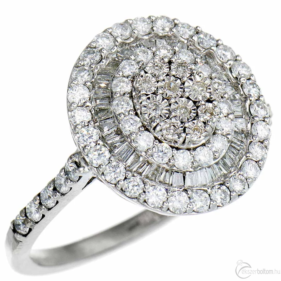 Gyémánt gyűrű kerek fejrésszel 14 karátos fehér arany (53-as méret)