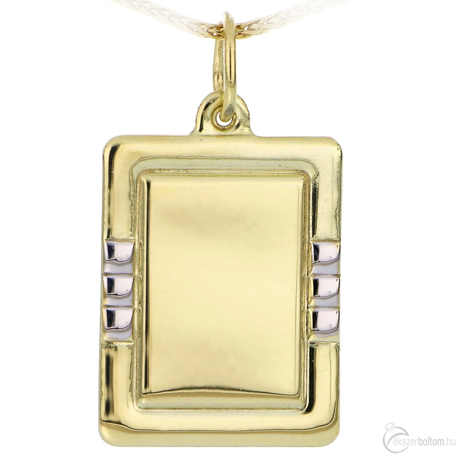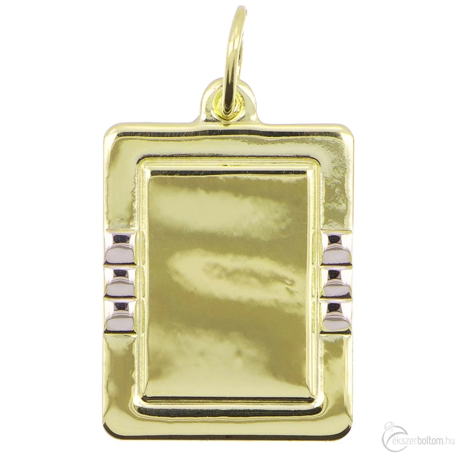 Sárga-fehér arany négyzetmintás keretes véshető lapmedál