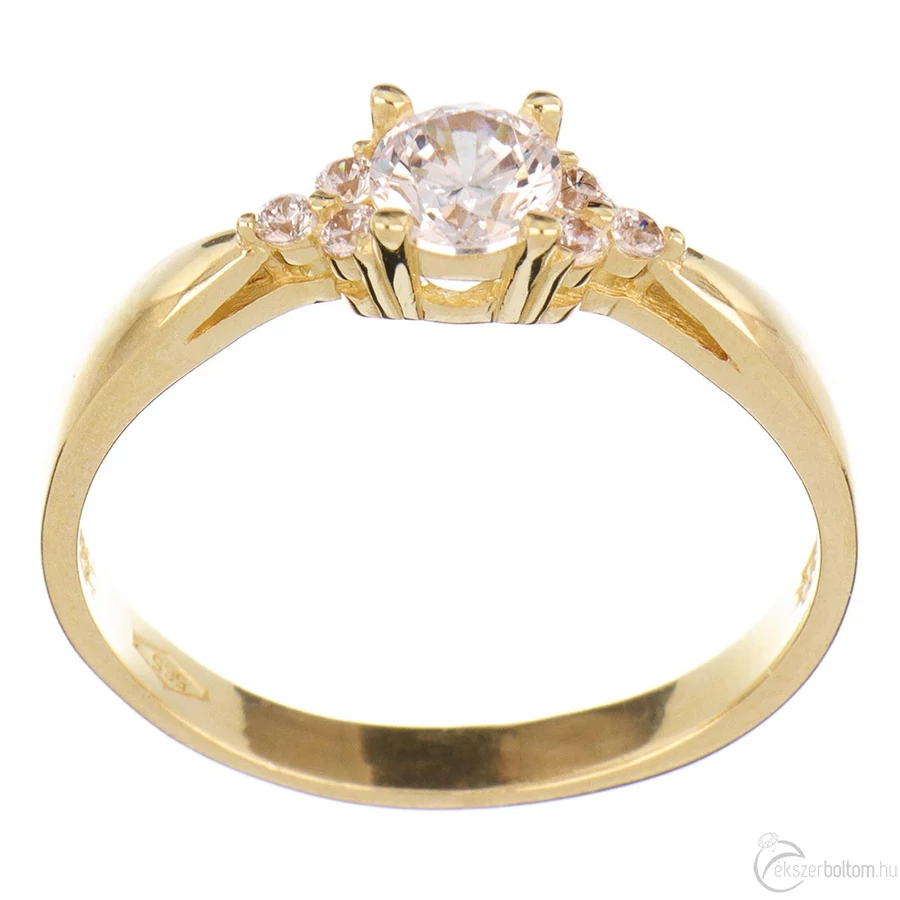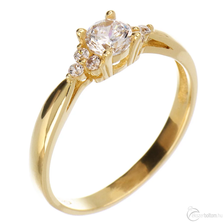 Fehér kerek köves sárga arany eljegyzési gyűrű 14 kt