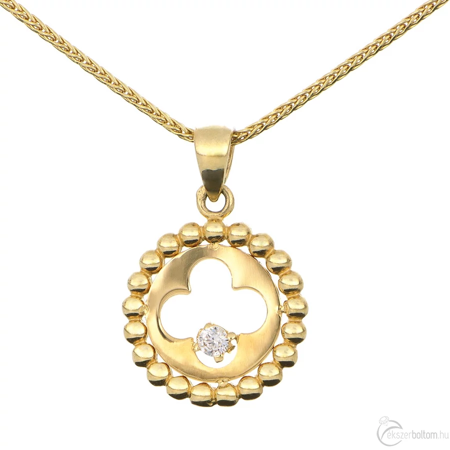 Kerek egyköves medál lóhere mintával 14 kt aranyból, 1,36 g