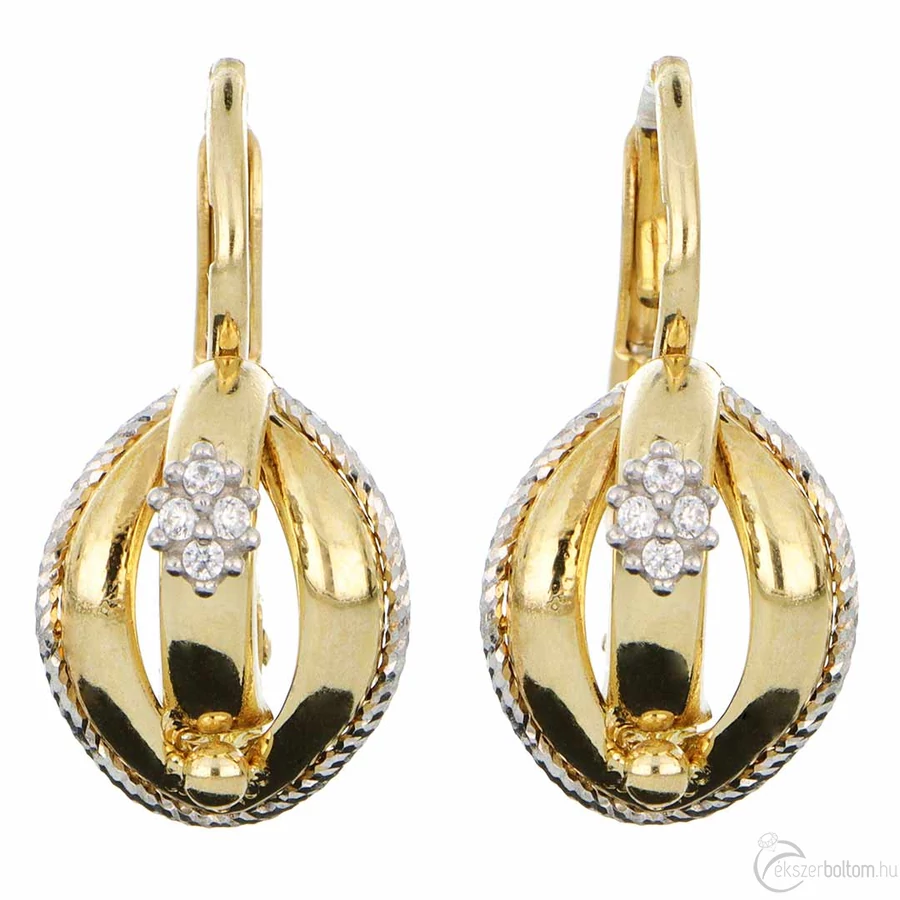Barackmag alakú négyköves patentzáras fülbevaló, 14kt, 2,52 g