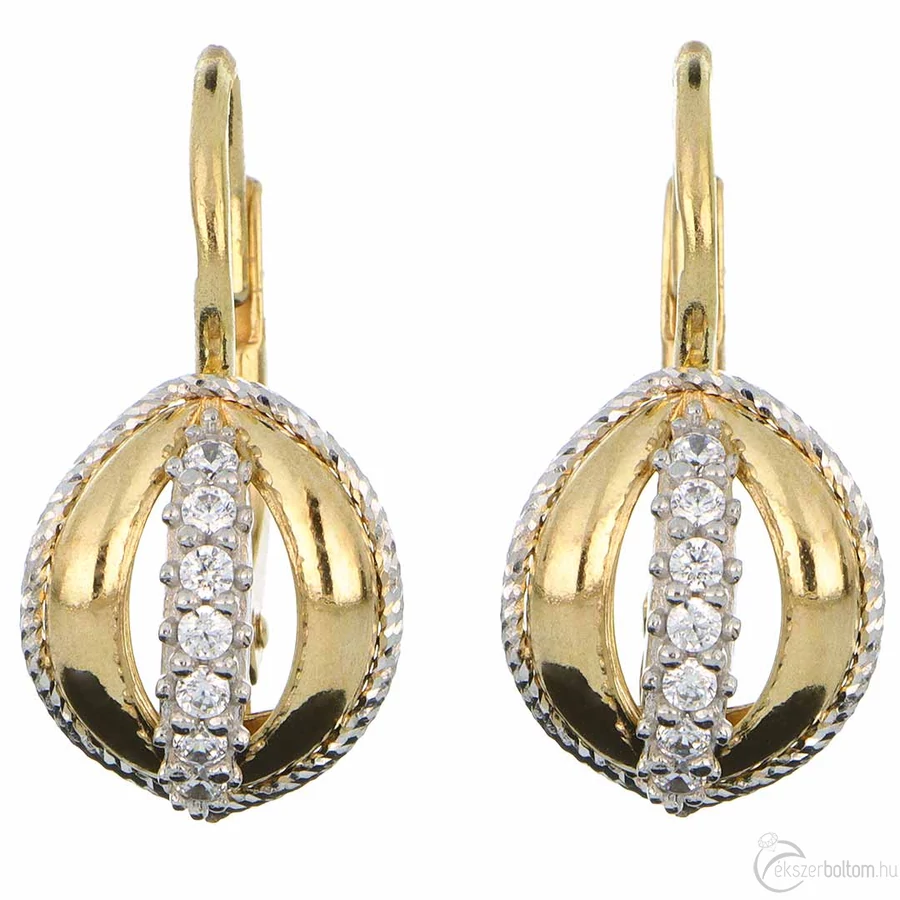 Barackmag alakú sorban köves patentzáras fülbevaló, 14kt, 2,58 g