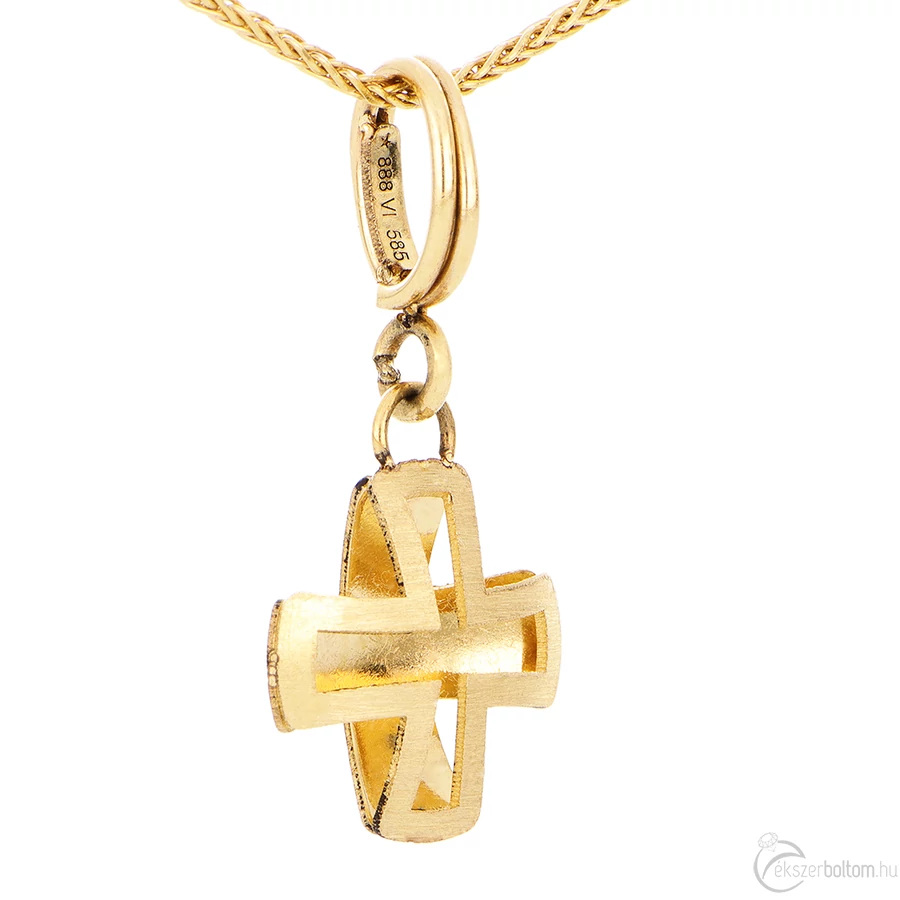 Tükrösen áttört domború kereszt medál, 14kt, 1,06 g