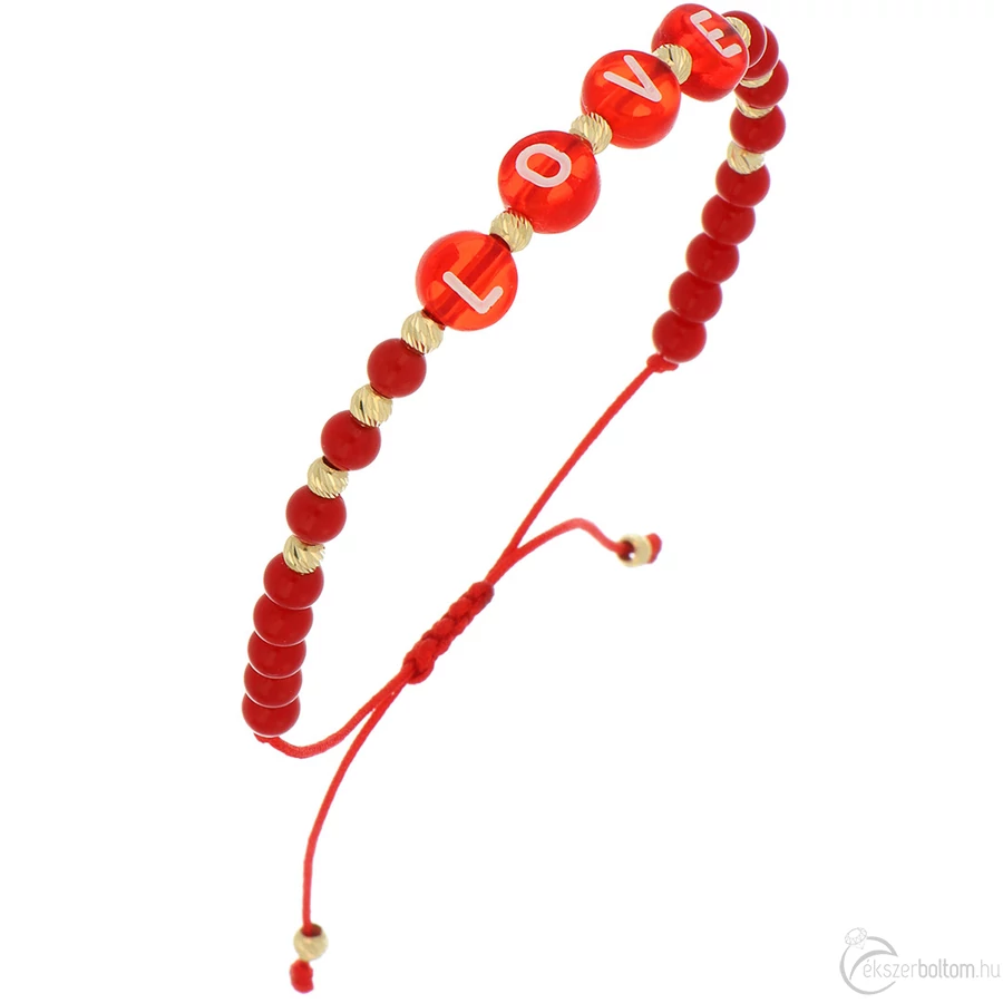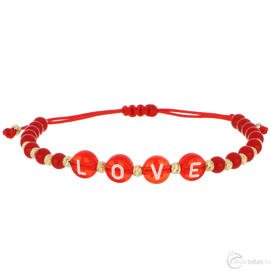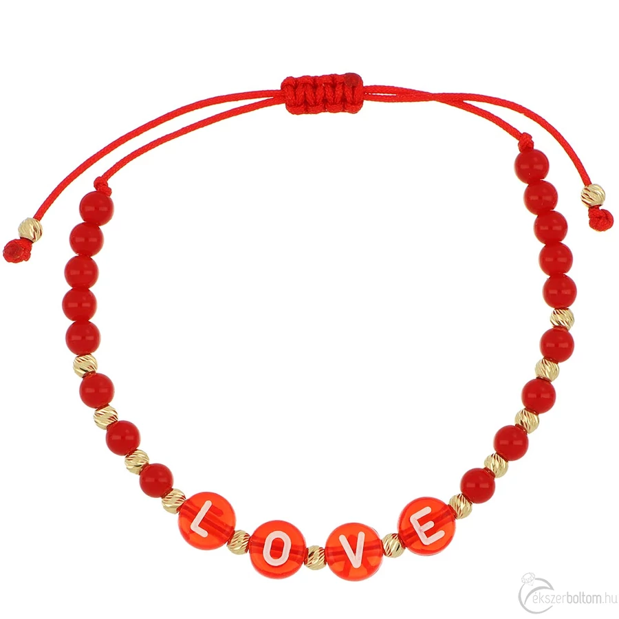 Extra olcsó arany és opak karneolpiros golyós órakísérő karlánc LOVE felirattal 14k