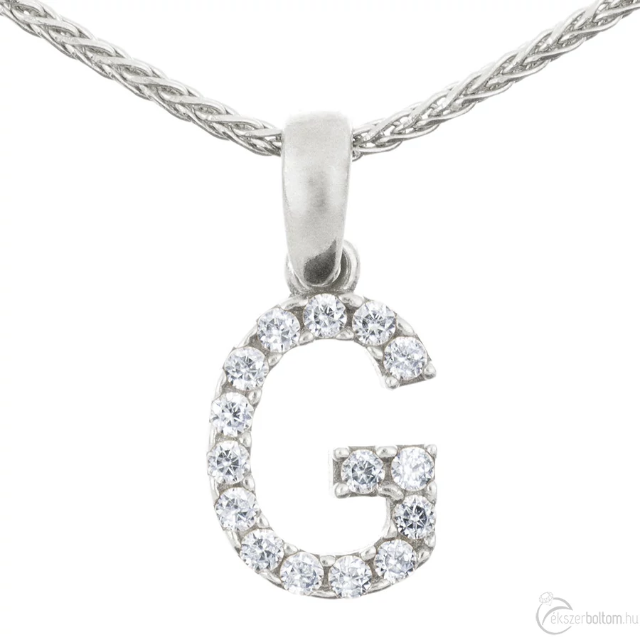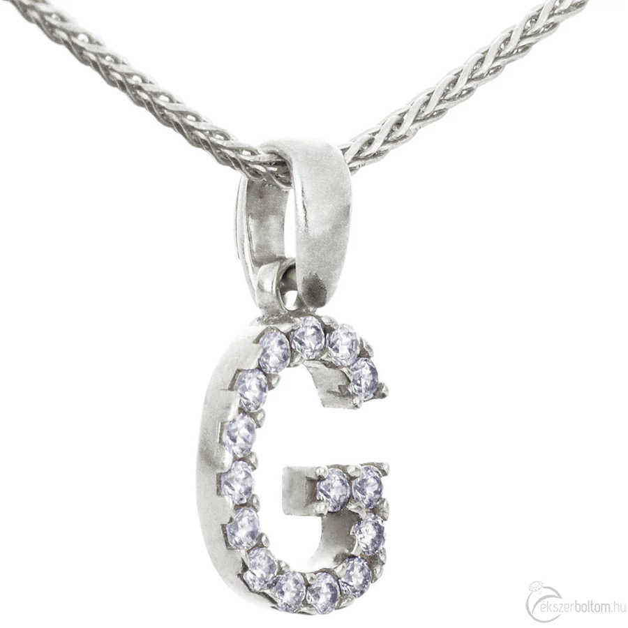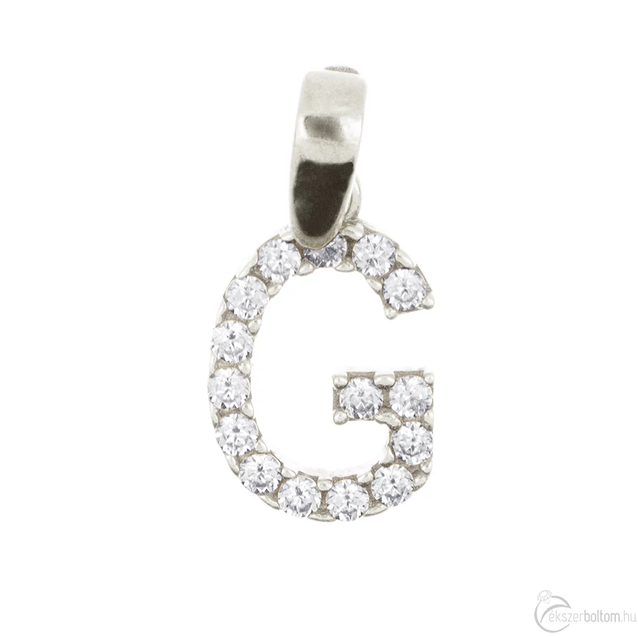 Köves 'G' betűmedál, fehér 14 kt 0,67 g