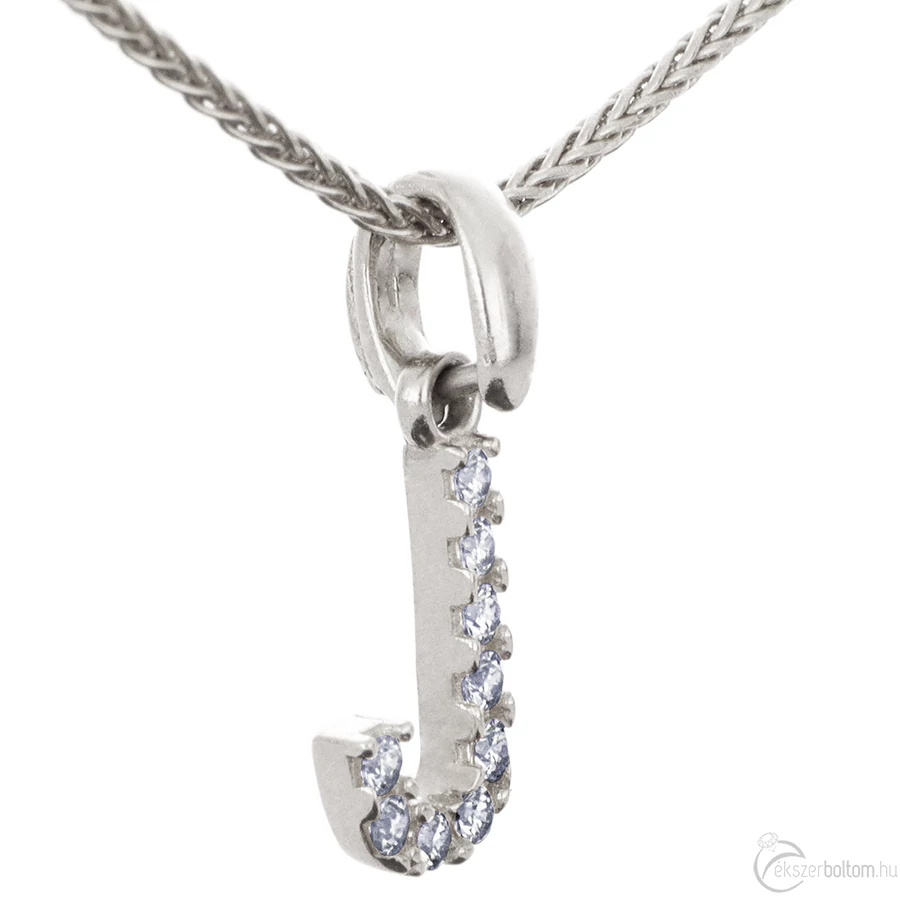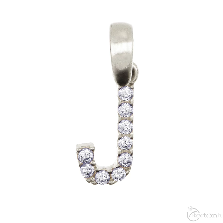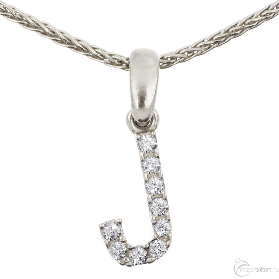 Köves 'J' betűmedál, fehér 14 kt 0,50 g