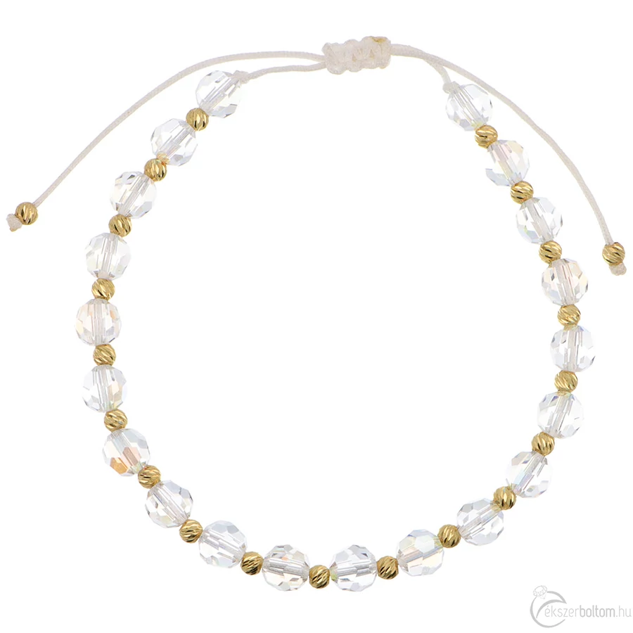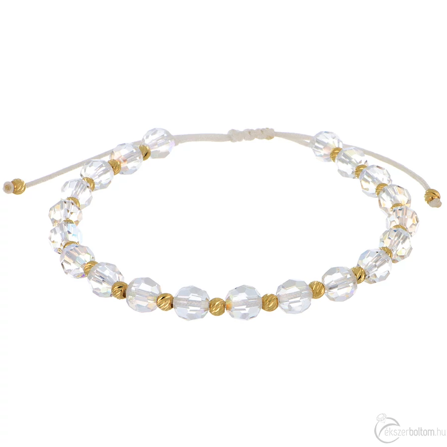 Valódi kristályos arany golyós AB órakísérő karlánc 14k