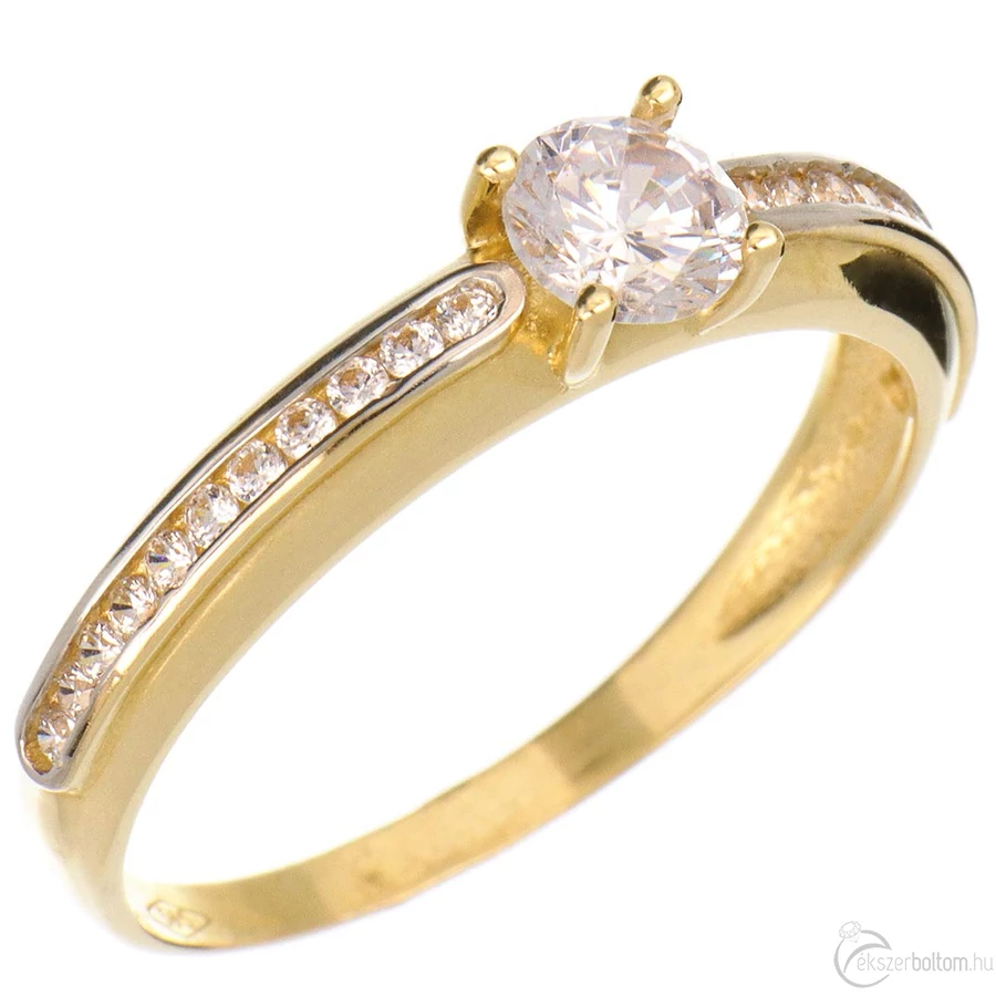 1+20 köves, emelt csatornás foglalatú szoliter gyűrű 14k 2,28g