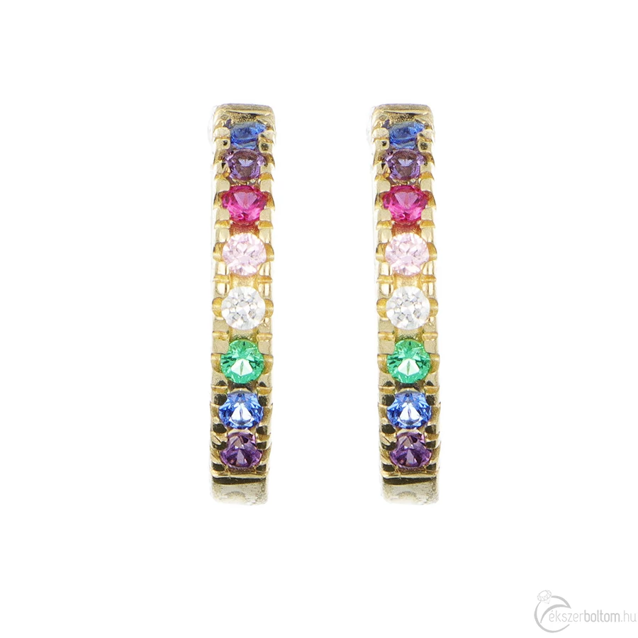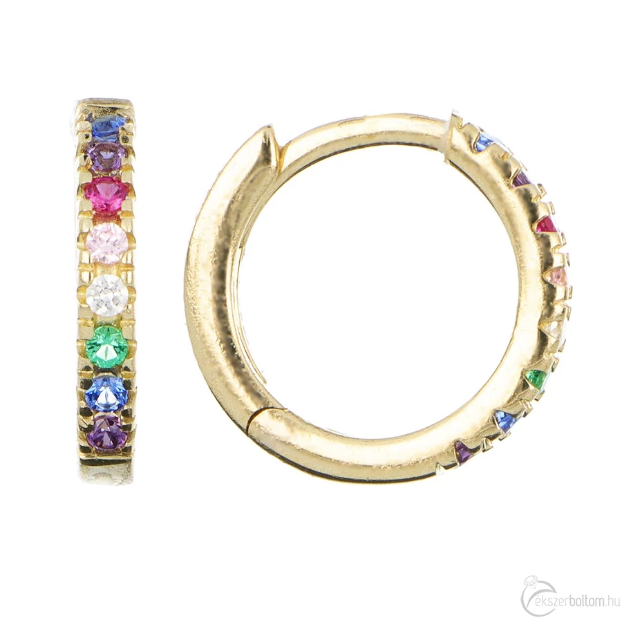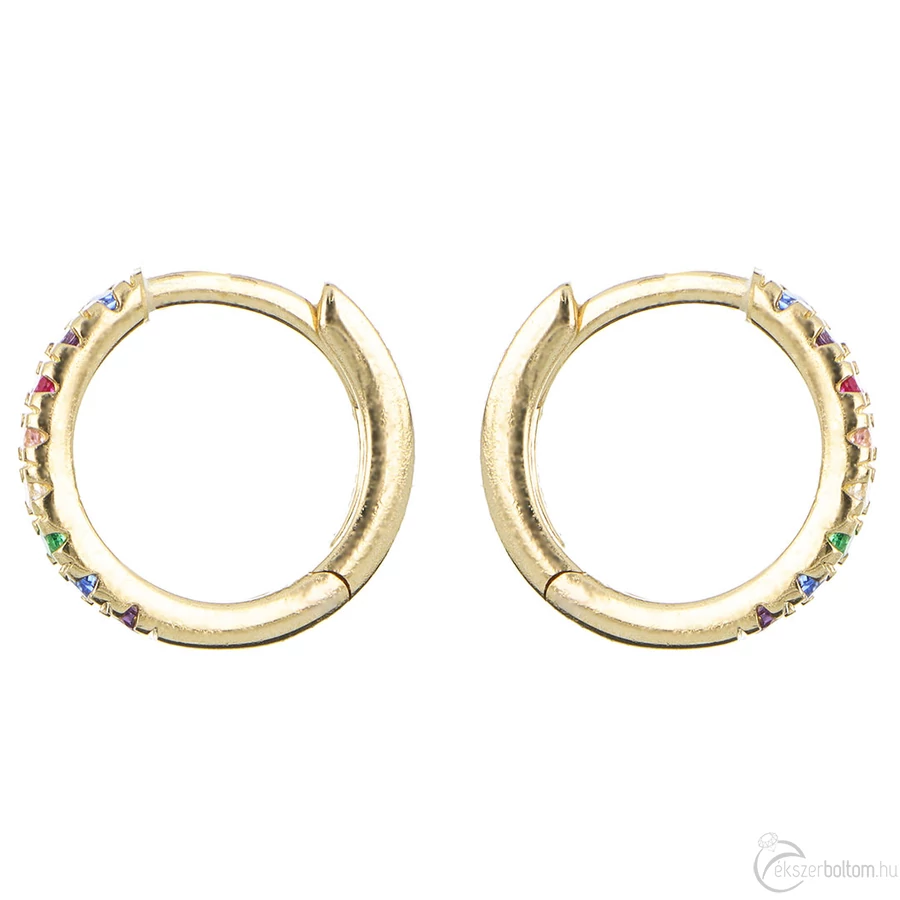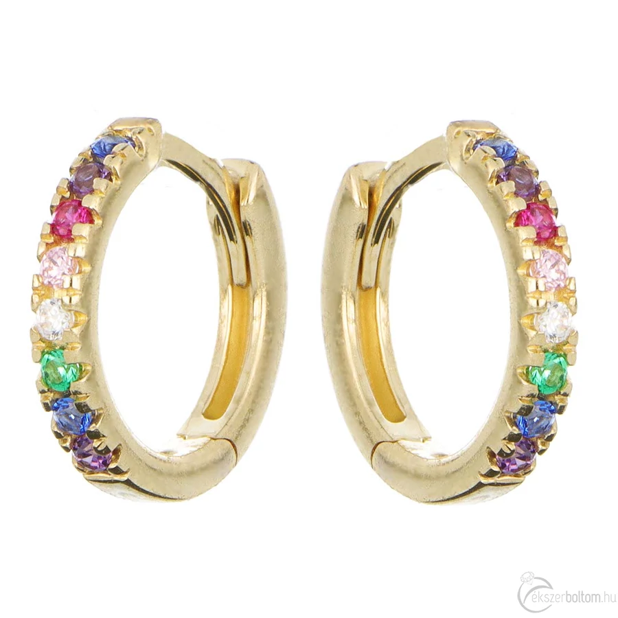 14 karátos sárga arany színes köves karika fülbevaló, 1,1 cm átmérjű, 1,40 g