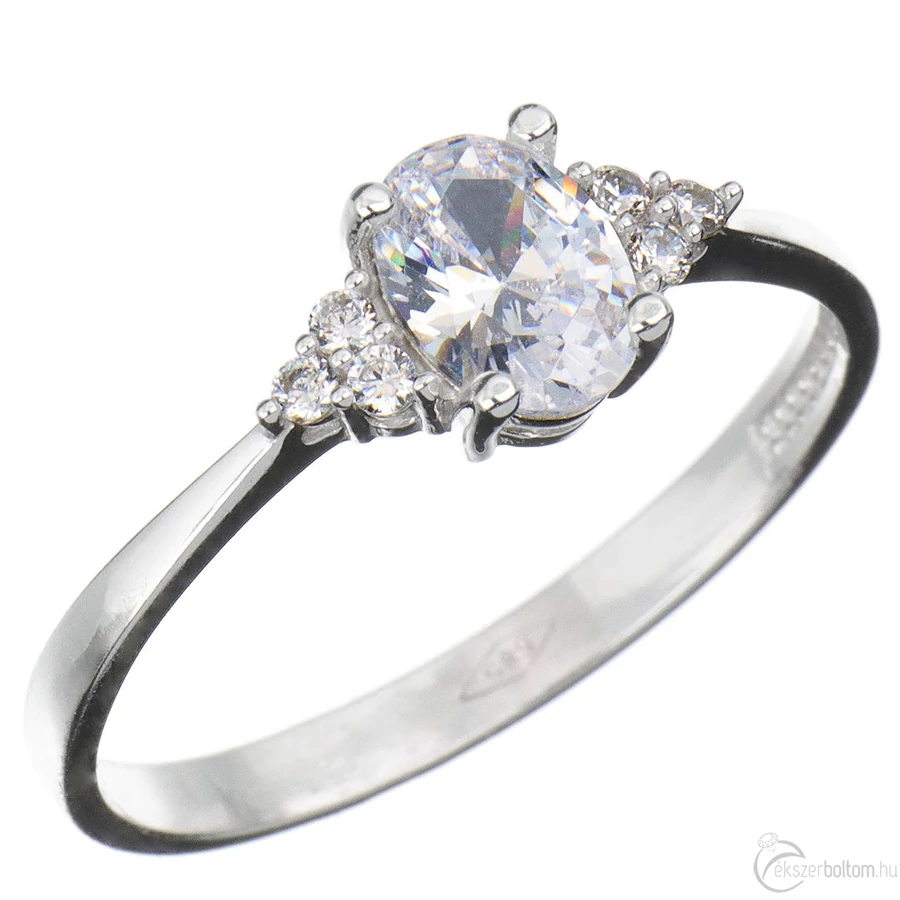 Fehér köves fehér arany gyűrű 14 kt, 1,88g