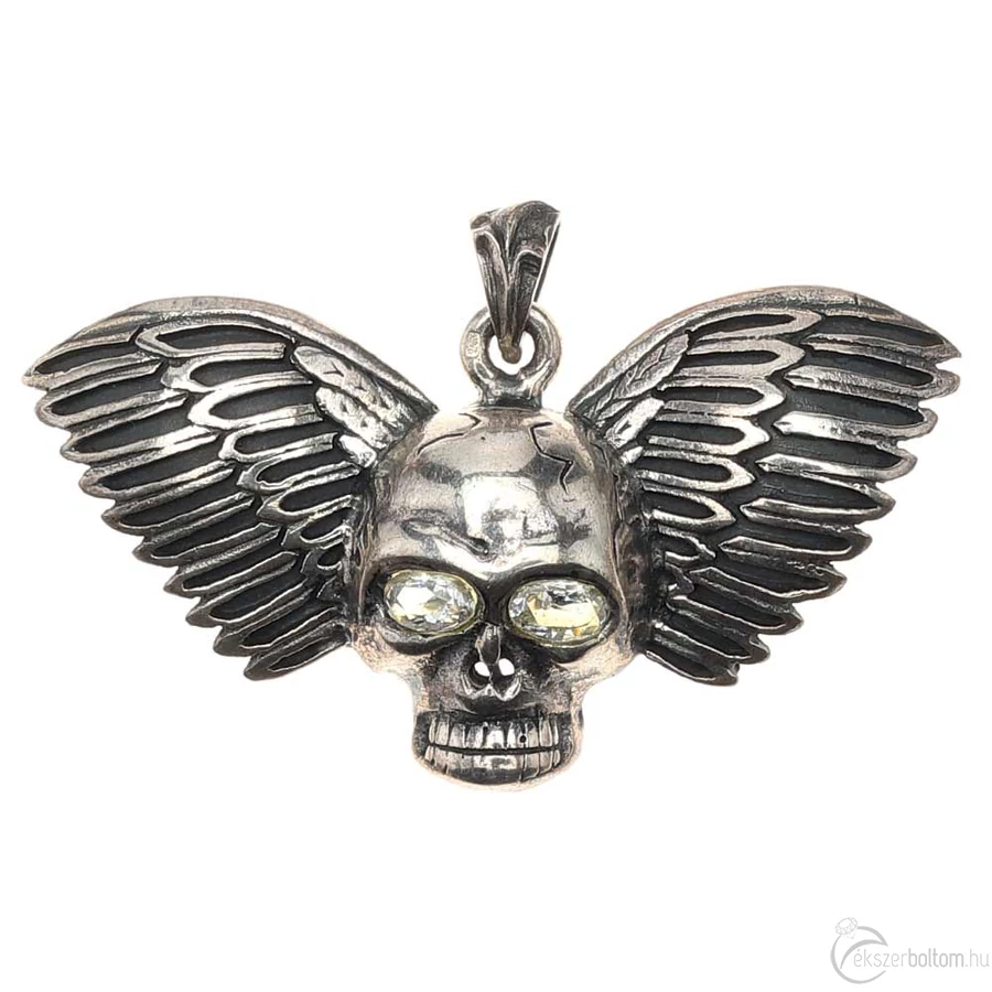 Ezüst koponya medál fehér színű cirkónia szemmel 925‰-es