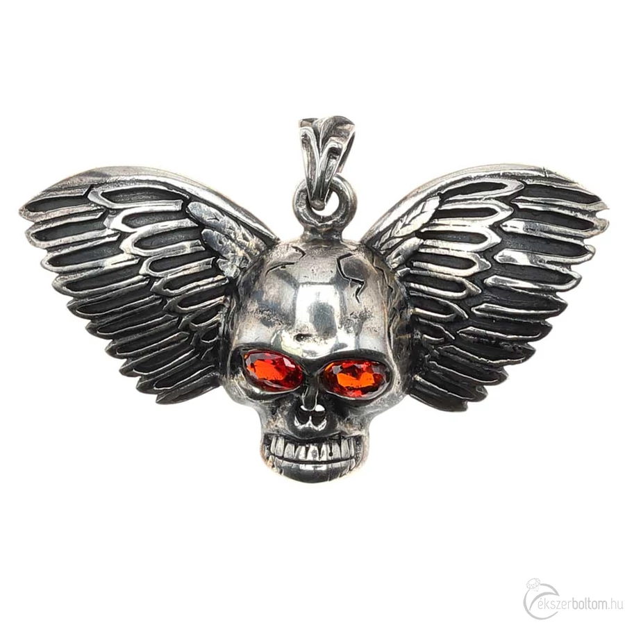 Ezüst koponya medál rubint színű cirkónia szemmel 925‰-es