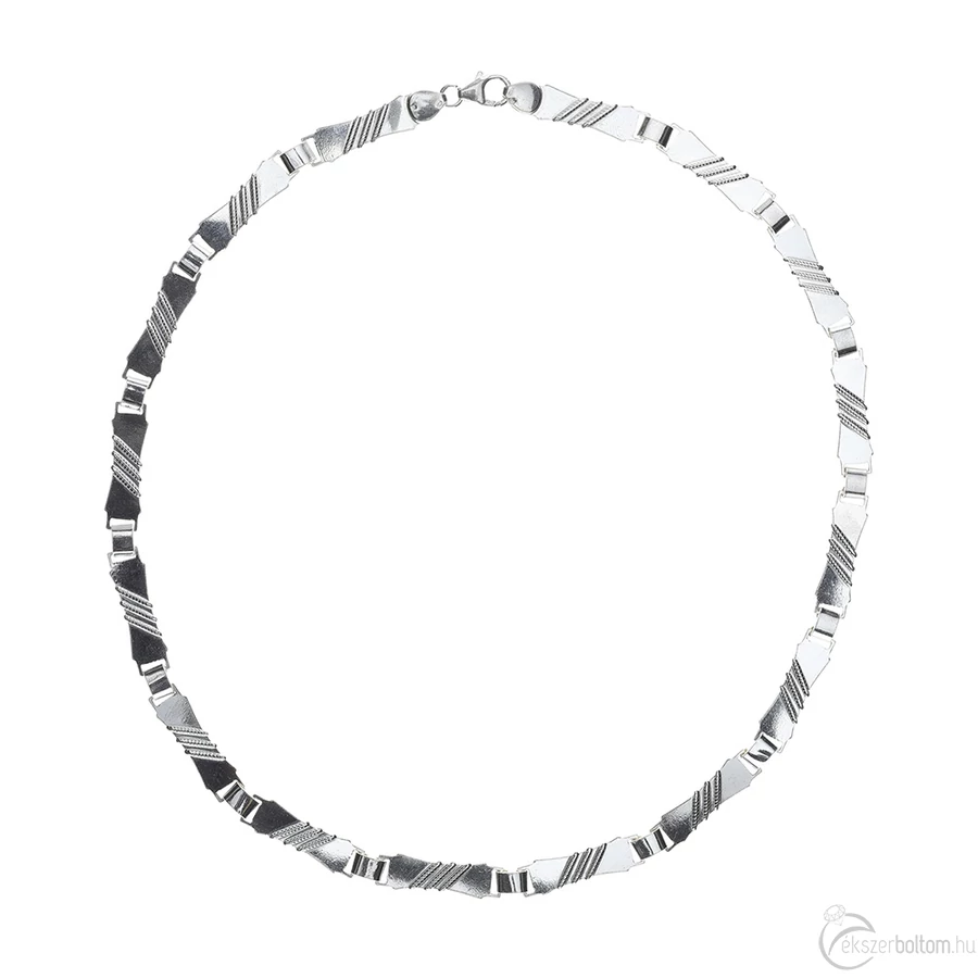Ezüst lánc lemezes, fűzött 925‰-es 8 mm széles, 45 cm