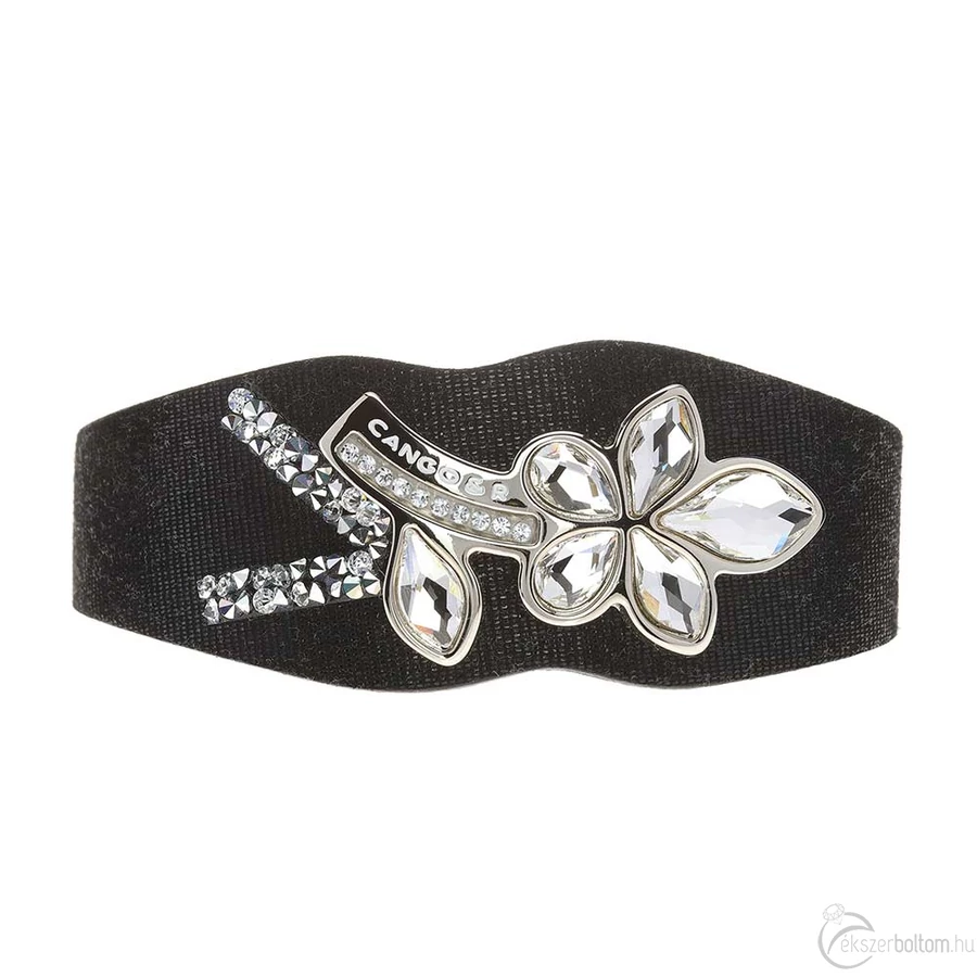 Cango & Rinaldi SECRET GARDEN mintás fekete karkötő ezüsztszín virágos dísszel és kis kristályokkal