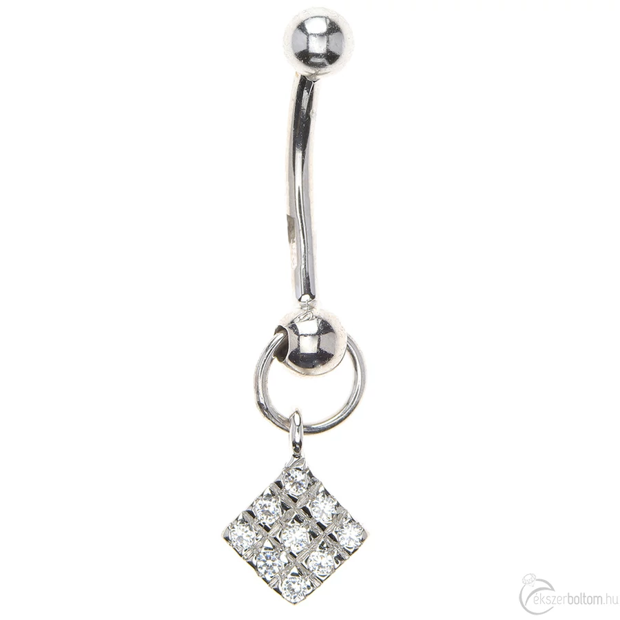 Mia cirkónia köves függős köldökpiercing, 18 karátos fehér arany