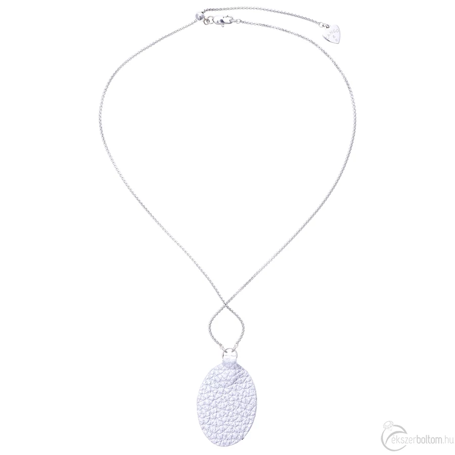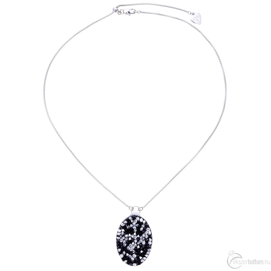 CNG ezüst mintás bőr nyaklánc fekete-fehér kristállyal