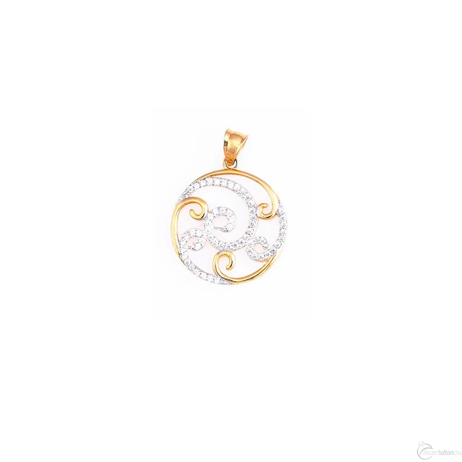 Sárga arany medál 14 karátos , csigavonal-mintás. A kerek medál kívül sima sárga arany, belső díszei váltakozva sima sárga és köves fehér arany csigavonalak, amelyek a Nautilus harmóniáját idézik. A külonja kb. 3,4 mm átmérőjű, és legszebben a sima hengeres láncokon: kígyóláncon, vékony barbara láncon mutat.