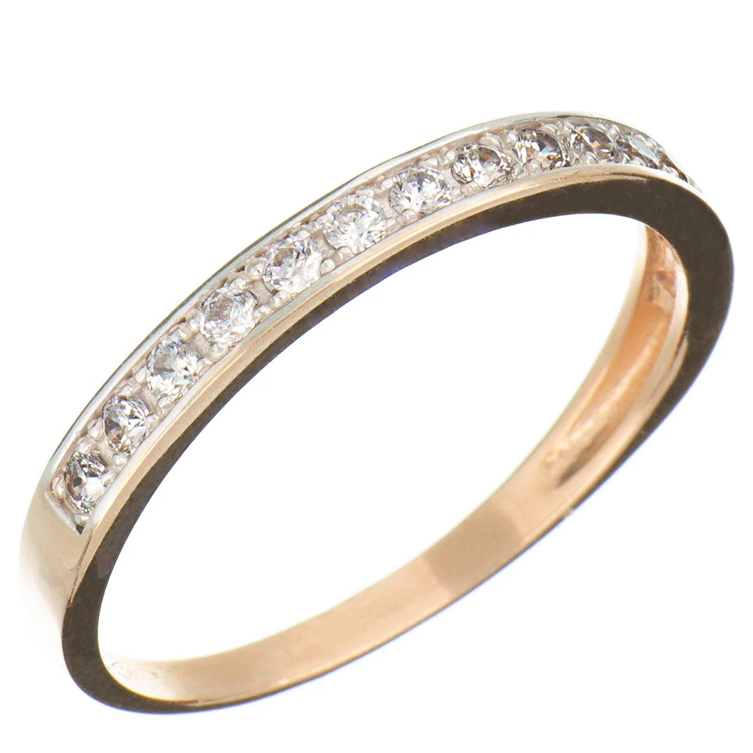 Egy sorban tizennyolc köves szoliter gyűrű (más néven leánykérő vagy kísérő gyűrű) négykarmos süllyesztett foglalattal, 14 karátos rozé (rózsa vagy vörös) aranyból. A gyűrűsín egyenes, klasszikusan elegáns kivitel. A vékony gyűrűsín révén a viselése kellemesebb. A süllyesztett, karmos kialakítás ellenállóbbá teszi az ékszert, így az még jobban viseli a mindennapos használatot.