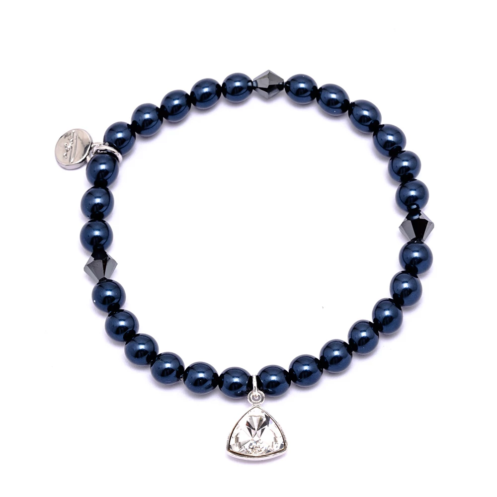 Cango & Rinaldi Night Blue – éjkék gyöngyös, ezüstszín fémdíszes karkötő fehér színű kristállyal